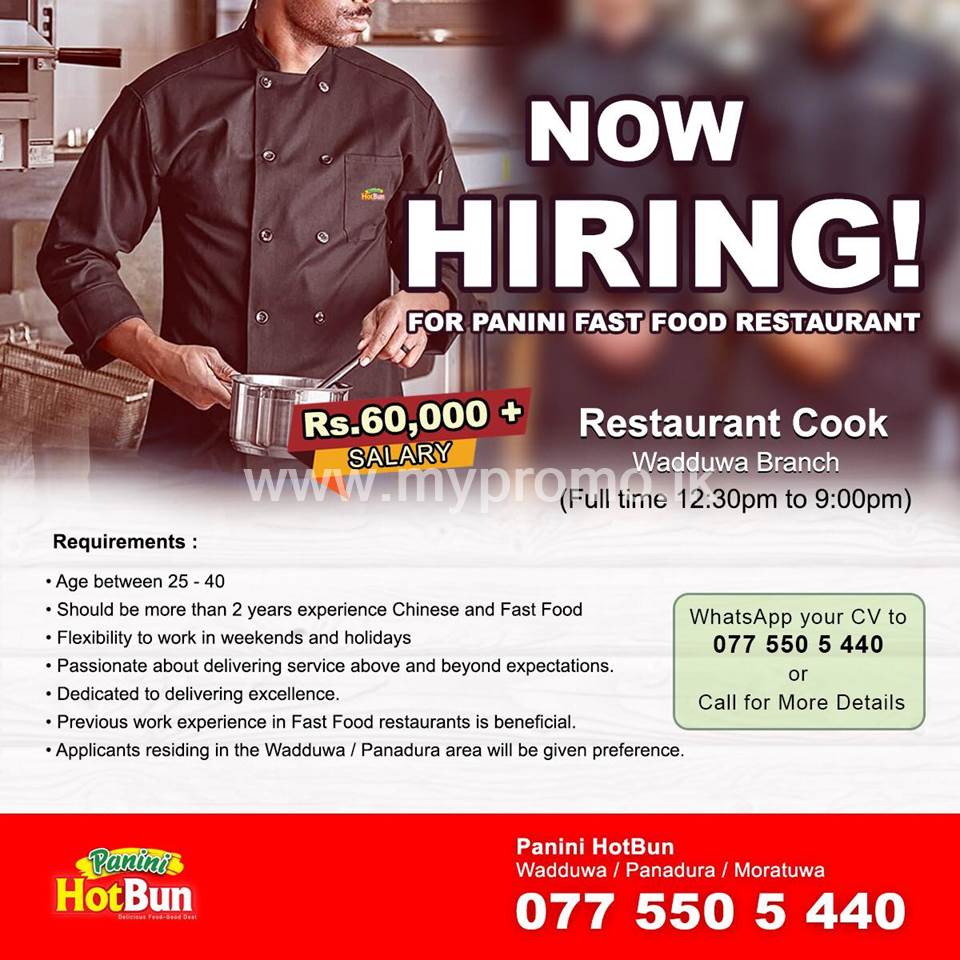 Chinese & Fastfood: An opportunity for a cook with 2 years of experience.