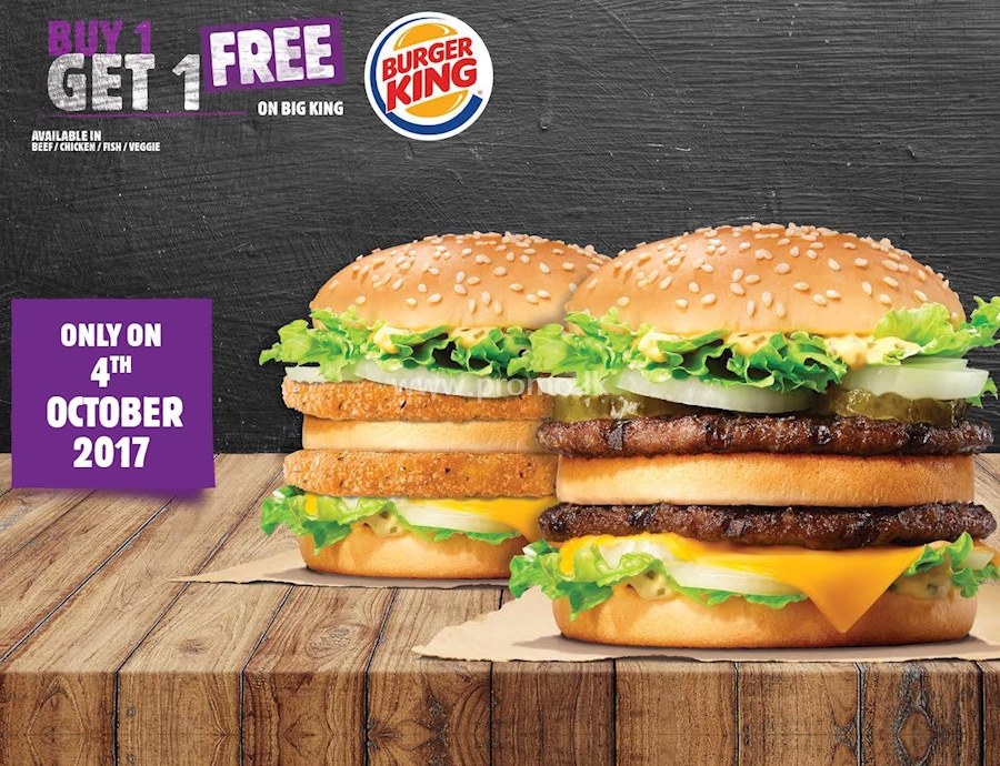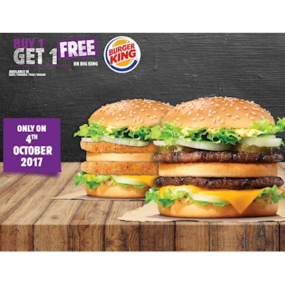Head over to Burger King and enjoy Buy 1 Get 1 Free on Big King !!!