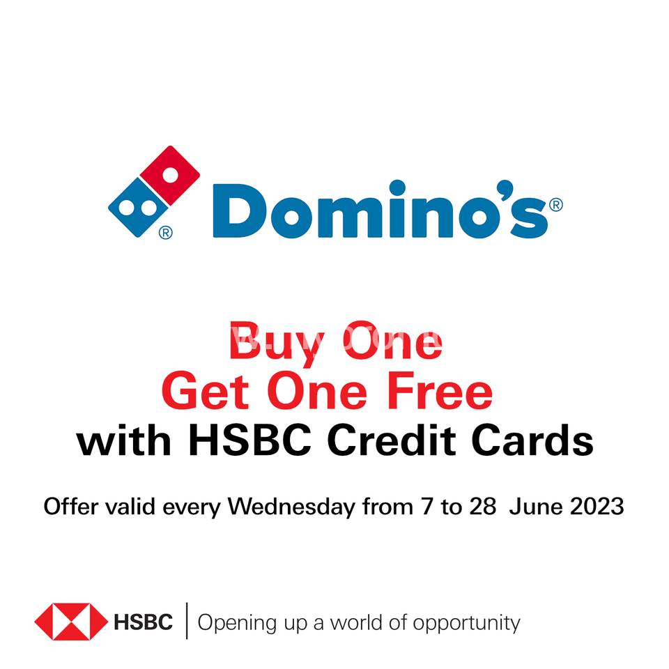 Buy One Get One Free Offer exclusively with HSBC Credit Cards at Domino's