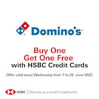 It's time for a pizza party with an incredible offer! Enjoy the mouthwatering taste of Domino's and enjoy our Buy One Get One Free Offer exclusively with HSBC Credit Cards!