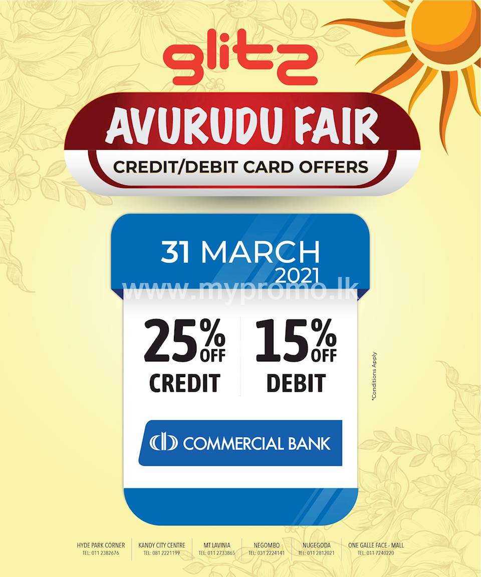 25% off on Commercial credit cards and 15% off on Commercial debit cards at Glitz