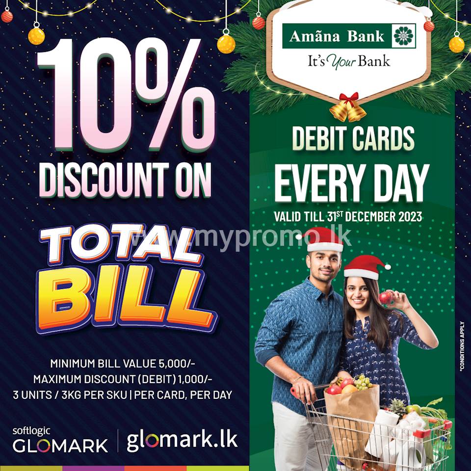 Offer valid every day till 31st December 2023 at all GLOMARK outlets and www.glomark.lk.