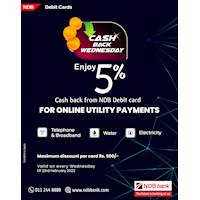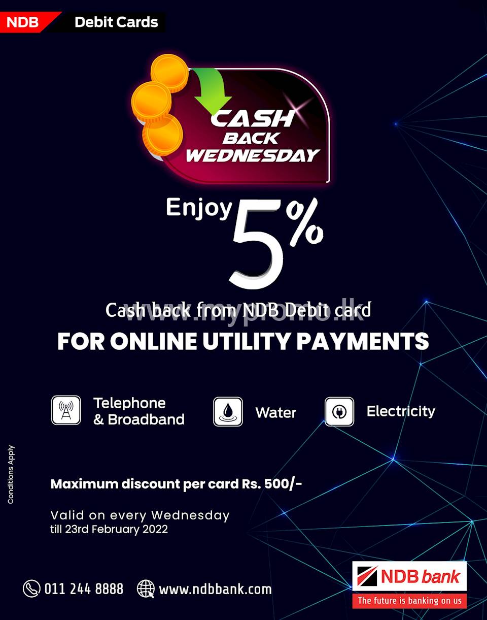 CASHBACK WEDNESDAY! Enjoy 5% cashback for all your online utility bill payments with NDB Debit Cards