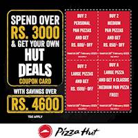 2. Redemption of coupon is also available for Takeaway orders for an additional charge of Rs50 per small pan pizza/ Rs100 per medium pan pizza/ Rs200 per large pan pizza