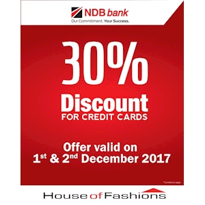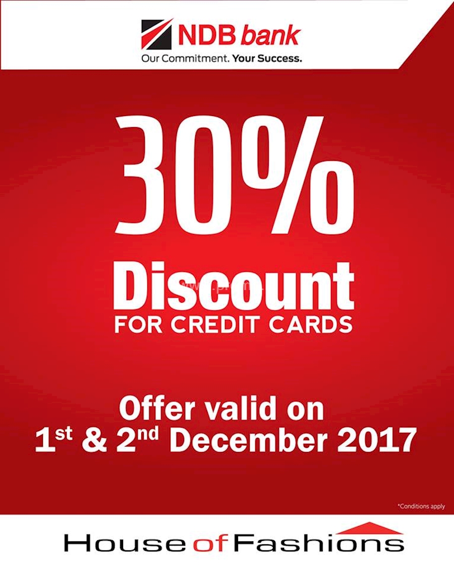 Enjoy 30% discount on NDB Credit cards only at House Of Fashion