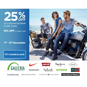 Enjoy amazing offers and discounts from the selected outlets with your Commercial Bank Cards