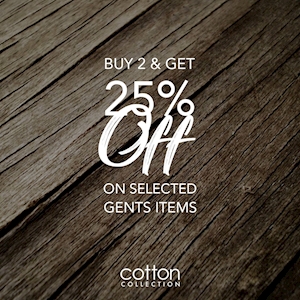 Buy 2 and Get 25% Off on selected Gents Items from Cotton Collection.