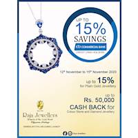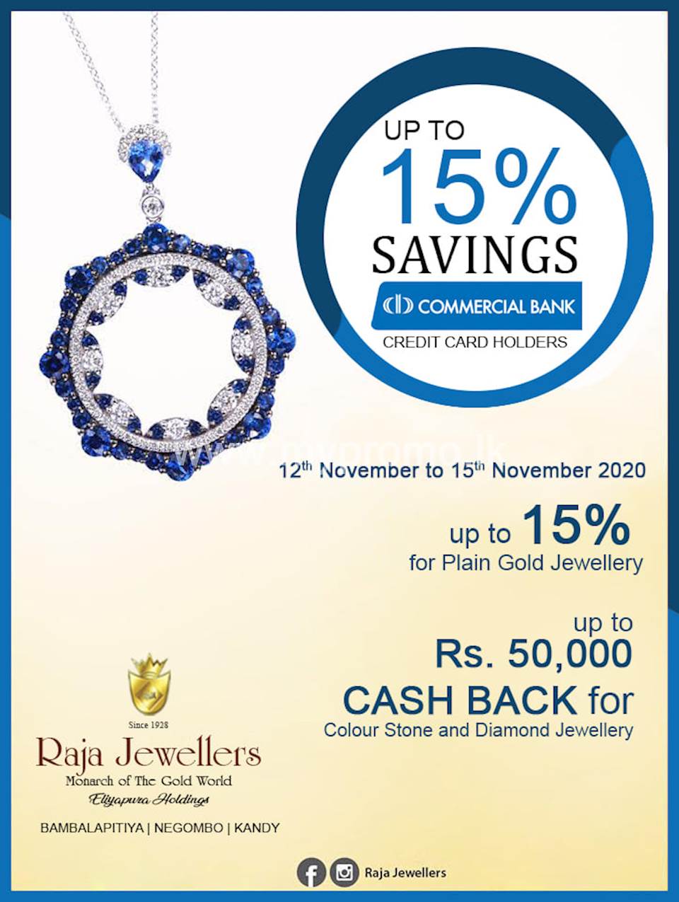 Up to 15% savings on plain gold jewellery at Raja Jewellers with Commercial Bank credit cards!