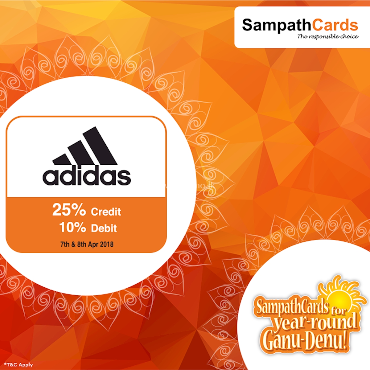 Enjoy up to 25% OFF at Adidas, this Avurudu Season, with Sampath Cards