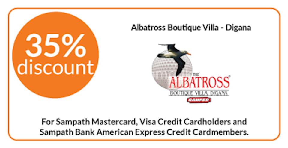 35% discount on double and triple room bookings on full board and half board basis stays at Albatross Boutique Villa, Digana for all Sampath Mastercard, Visa Credit Cardholders and Sampath Bank American Express Credit Cardmembers.