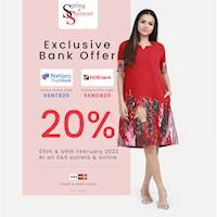 Exclusive Bank Offers 20% off, with Nations Trust and Nations Development Bank visa, master credit and debit cards at all Spring & Summer